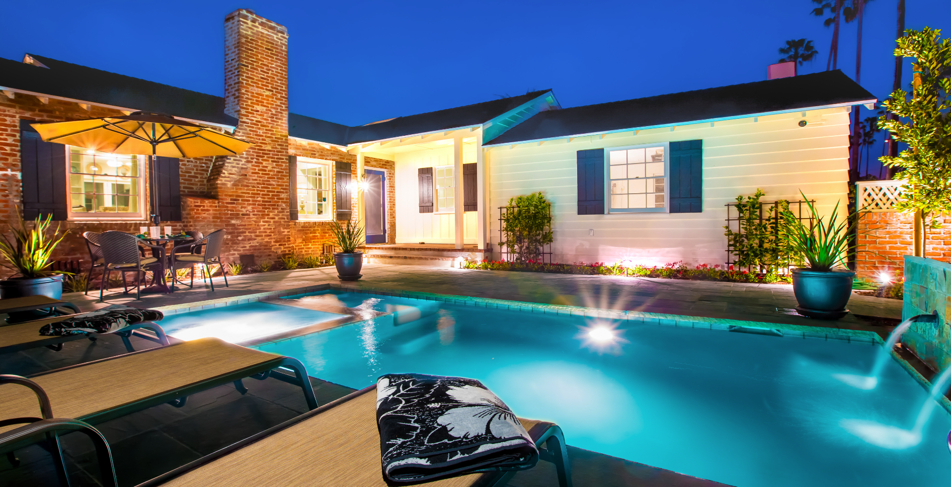 Las Palmas Escape welcomes you to a private pool and hot tub. Located steps from world-famous Windansea Beach in La Jolla on a street made famous for the rows of tall swaying palm trees. Hot tub is included in rental. Additional pool heating fees apply.
