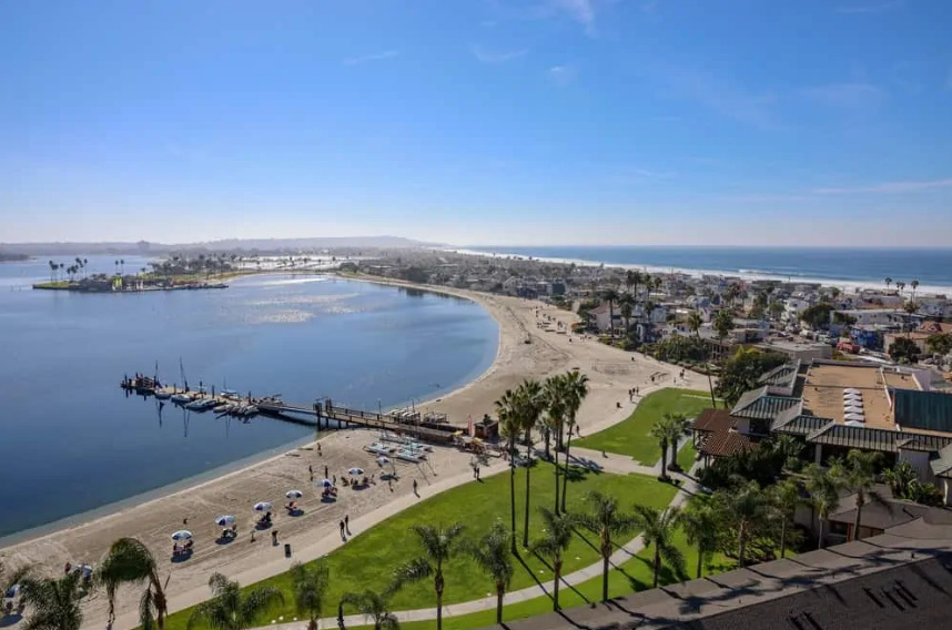 Fun and funky Mission Beach is a top destination for San Diego Visitors. Mission Beach is in the heart of all the action. Featuring miles of beach and boardwalk. It's the ideal spot to try surfing, rent a boat or bike to explore the area. Restaurants and shops are nearby by along with Belmont Park Amusement Park which features the historical roller-coaster and arcades along with ocean front dining.