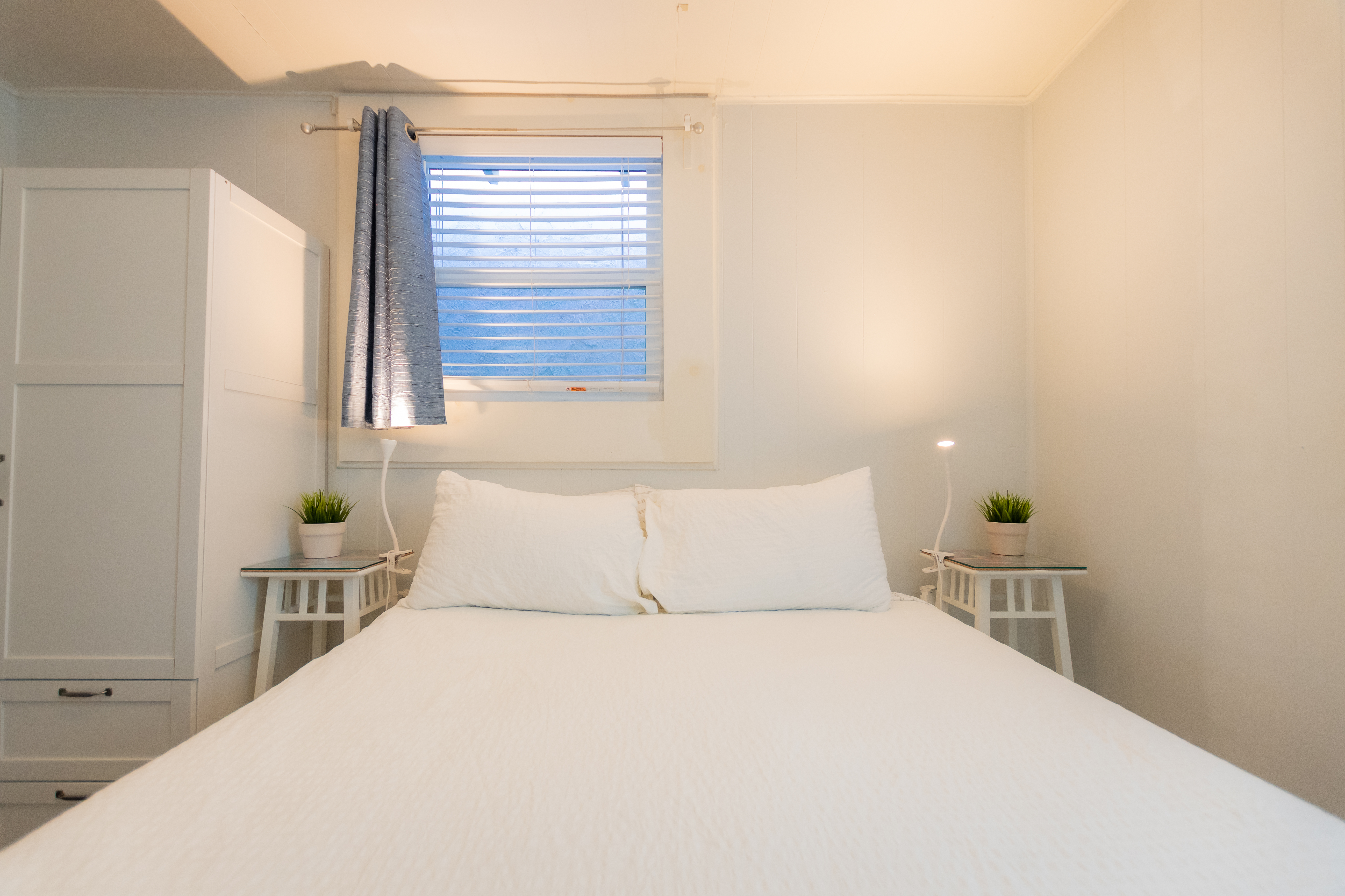 The bedroom has a Queen bed. There is a daybed in the living area that doubles as a twin bed sleeping space and the couch for a relaxing night in watching TV.