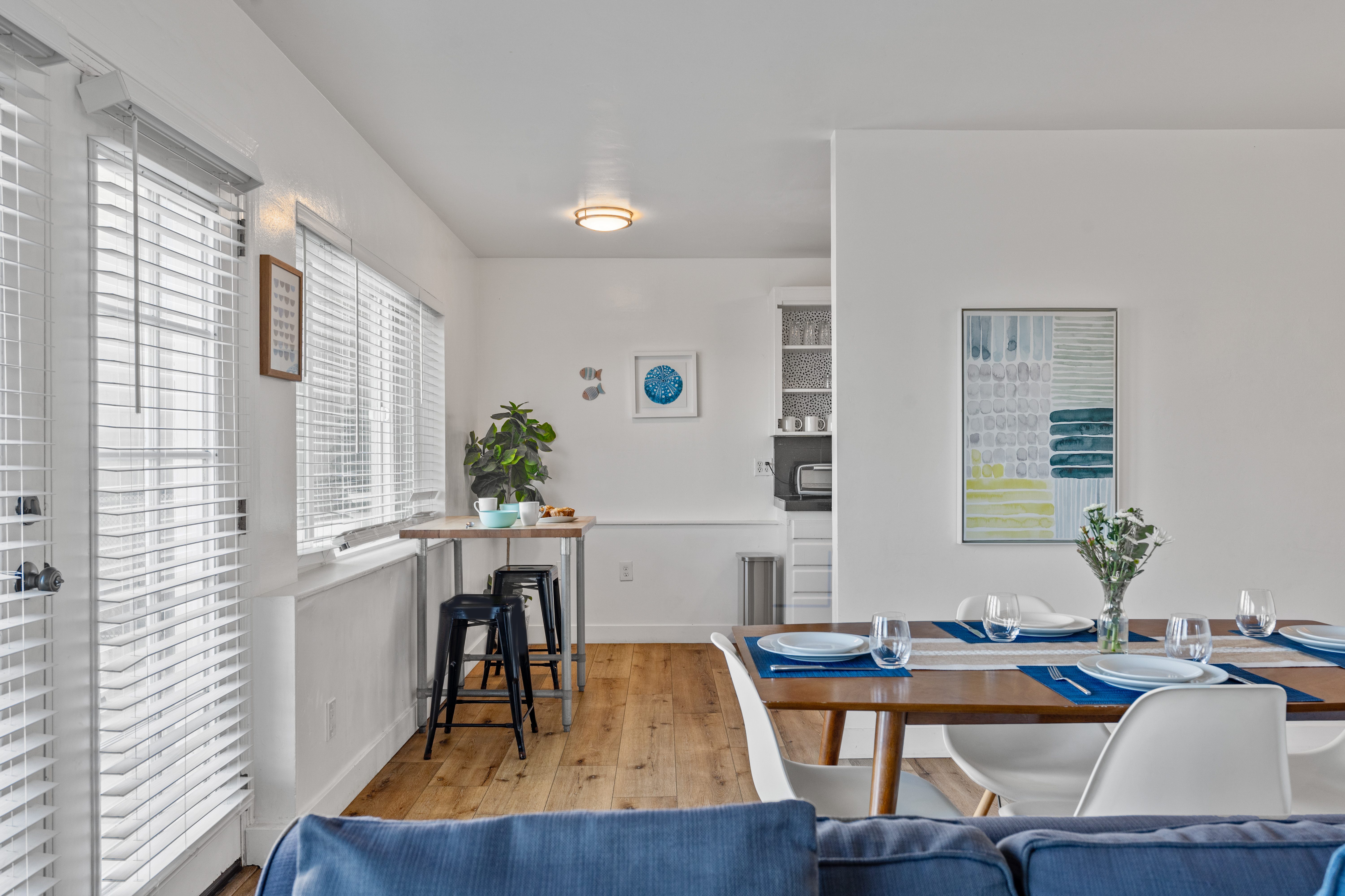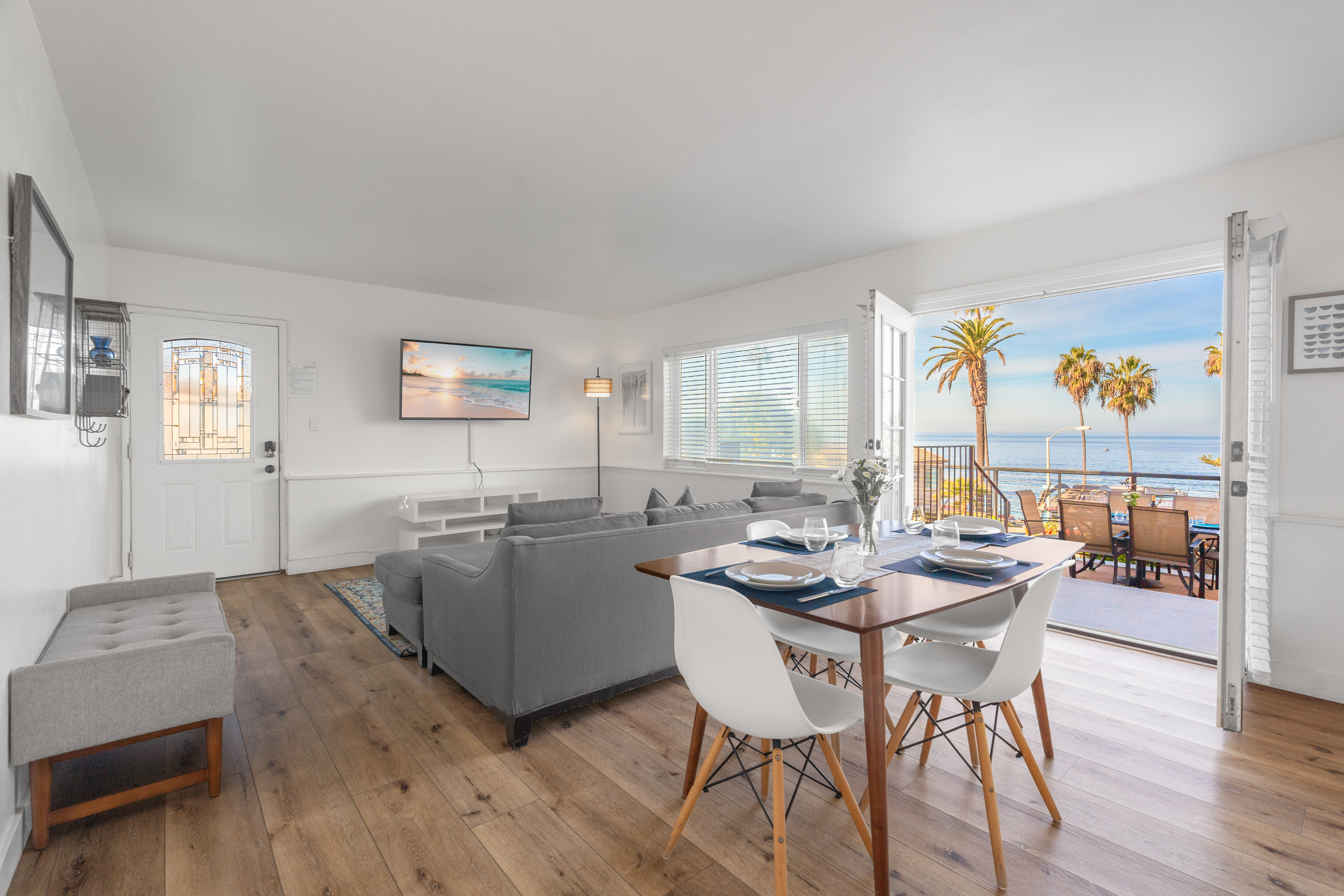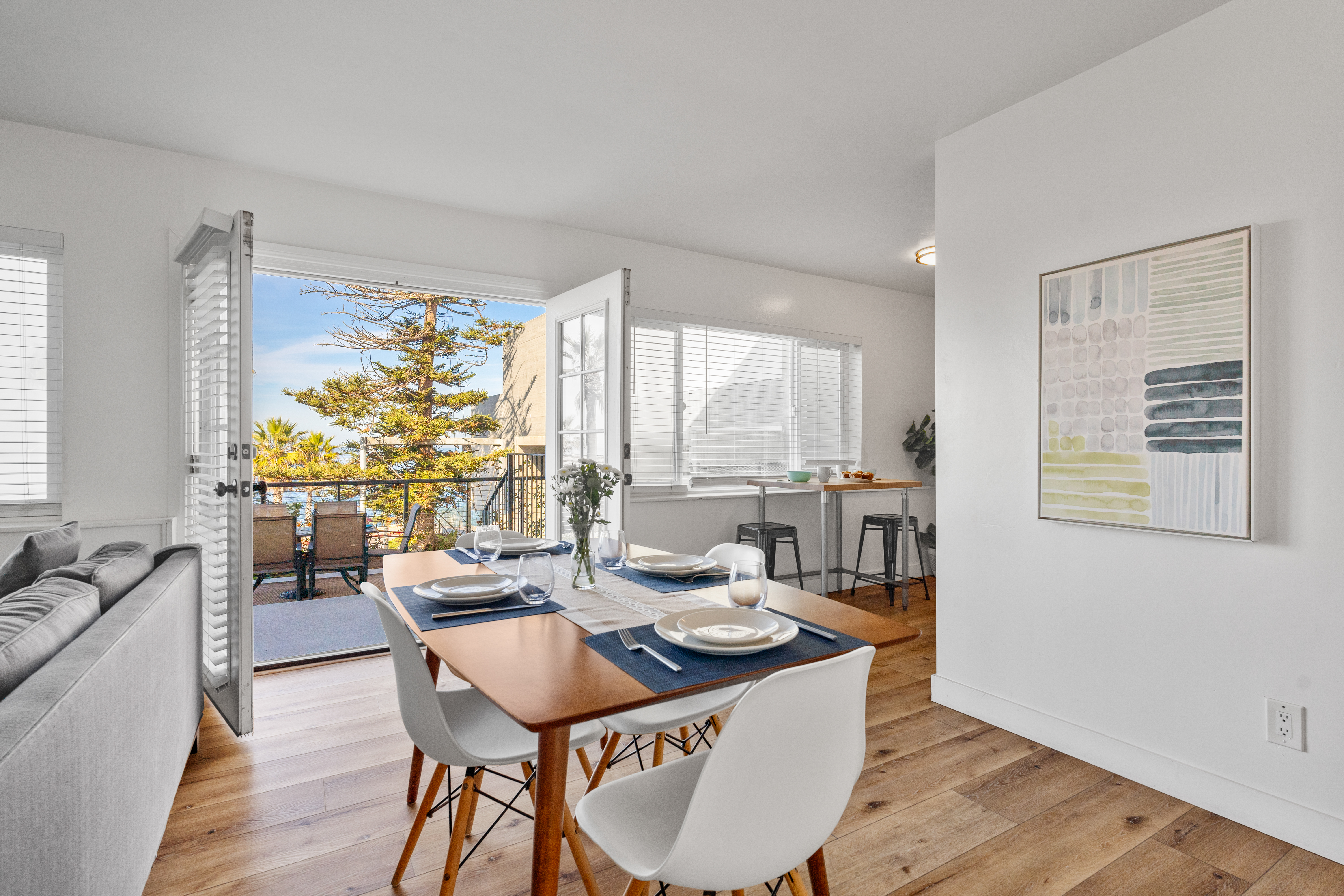 We stayed for a family wedding. Ocean view from spacious patio! Conveniently located next to the Museum of Contemporary Art San Diego, and a minute walk away from the wedding bowl. The location makes for a great value. The space itself has lived in character being it is an older building. Clean and functional. Very quiet at night. Street parking was available; be sure to understand the restrictions and you will be fine. All worked well as a base camp for our group of three couples to stay three nights.- Eric F from Minneapolis, MN, Posted: 5/9/2025