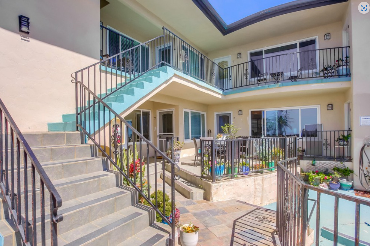 There are several steps throughout the complex and to the unit on the second floor.