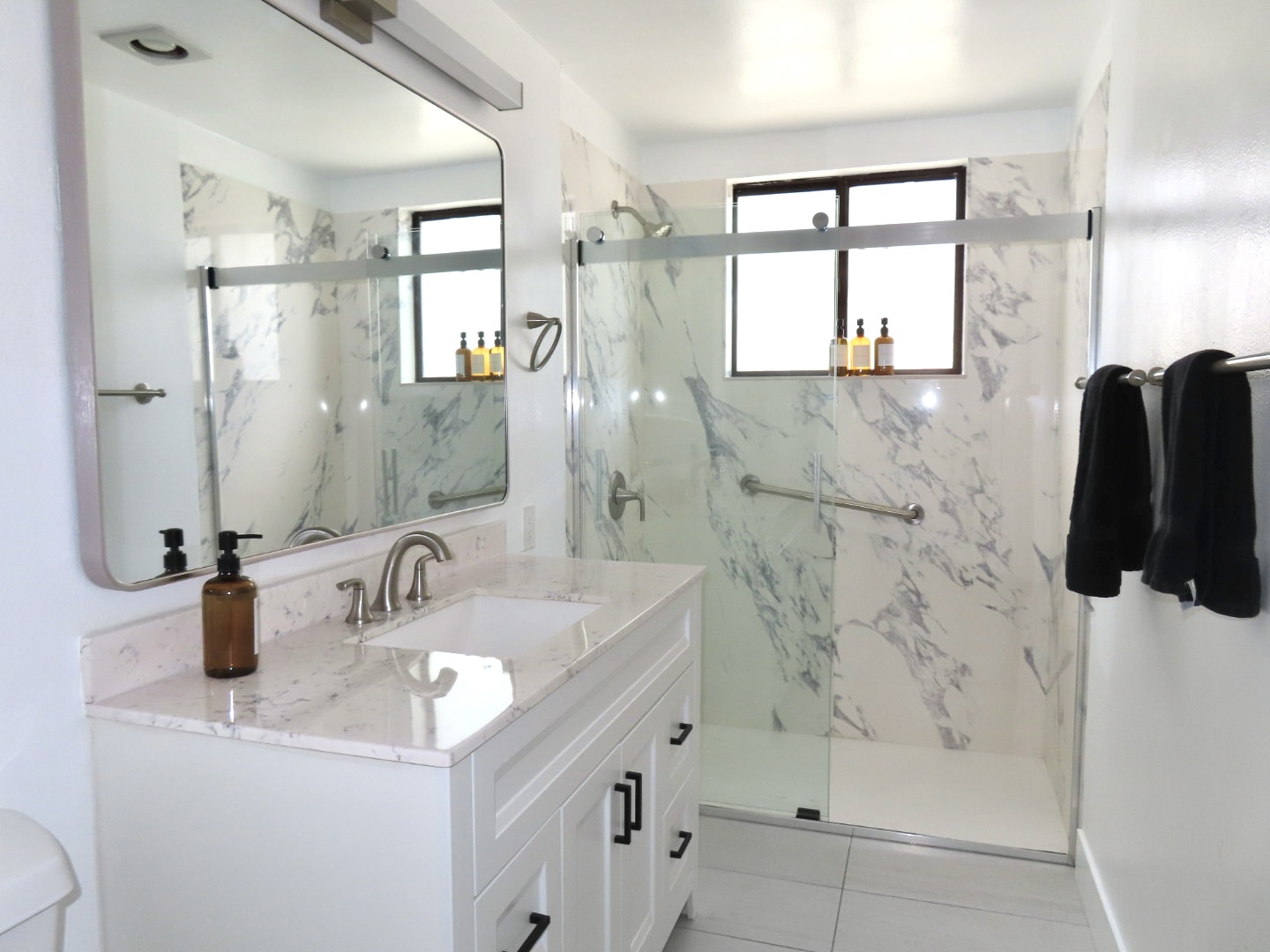 The main floor shared bathroom has recently been redone with a walk-in shower. The ocean front queen bathroom has also been redone with a walk-in shower for easy access.