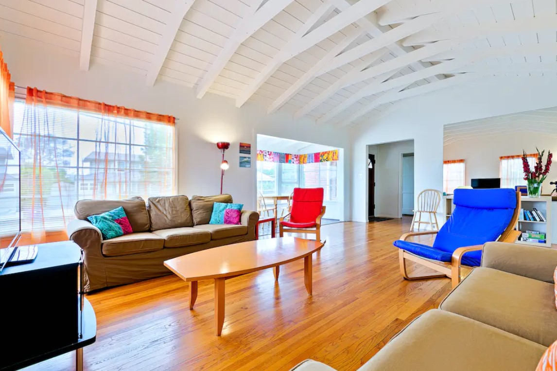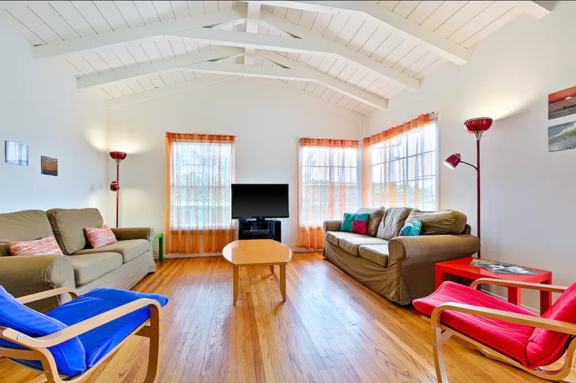 We loved our stay. The house embodies its 1950’s circa beach town architecture. It’s spacious with lots of options to hang out. The kitchen was adequately stocked for staying cooking. The backyard was great with multiple seating areas and a corn hole was a daily event. Having the beach chairs and umbrellas was really nice along with the several block walk to two beaches and tide pools. It was quite warm during our stay and the home does not have a/c so the fans were necessary and appreciated. We contacted the property management company with questions prior to arrival as well as to replace a fan and they responded very promptly in all instances. We would definitely stay again.- Reini W from Jamestown, TN, Posted: 9/24/2025