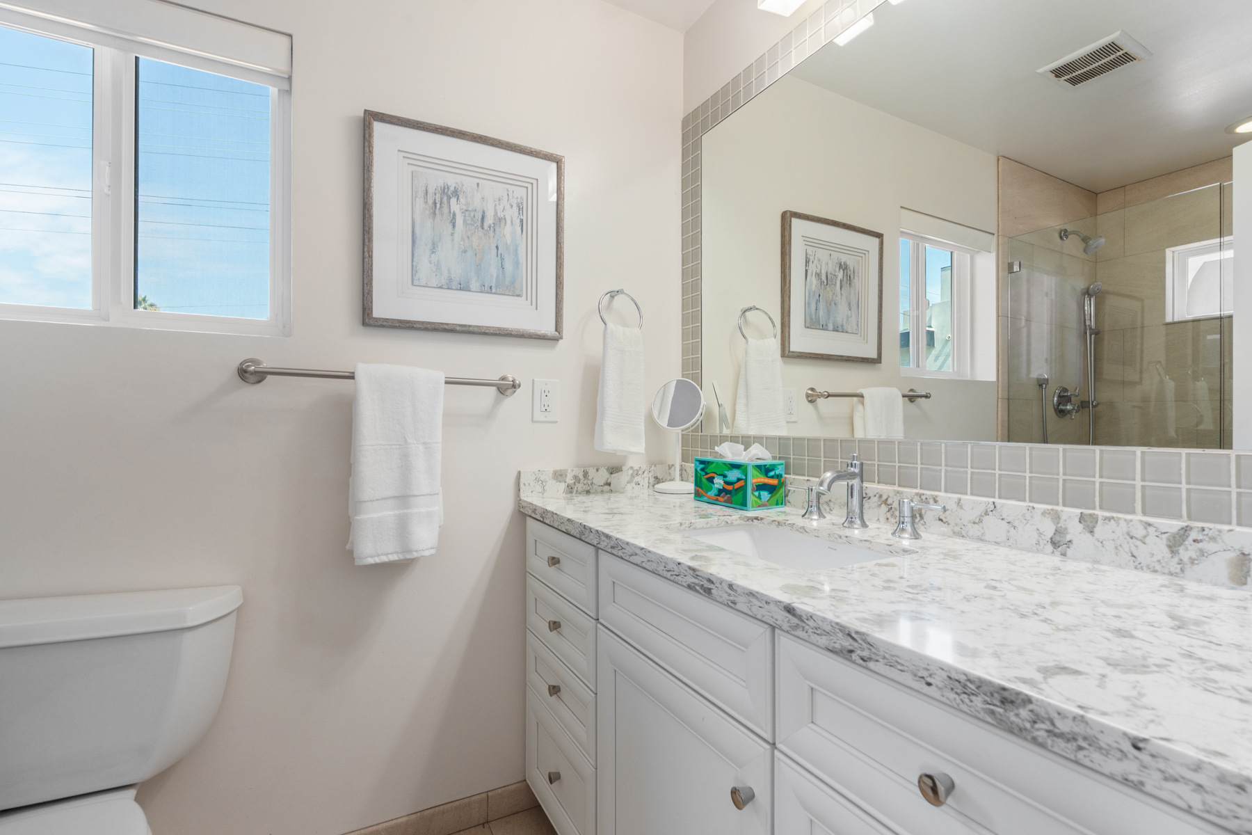 The home was spacious and well appointed. Incredibly convenient to downtown La Jolla and San Diego. Kitchen had great range and oven, with plenty of cooking and serving ware to accommodate our extended family of 10. The rooftop deck was a beautiful place to watch the sunset. Neighborhood was quiet and ample street parking. Highly recommend for location, space, comfort, and price.- Tess M from Flossmoor, IL, Posted: 1/29/2026