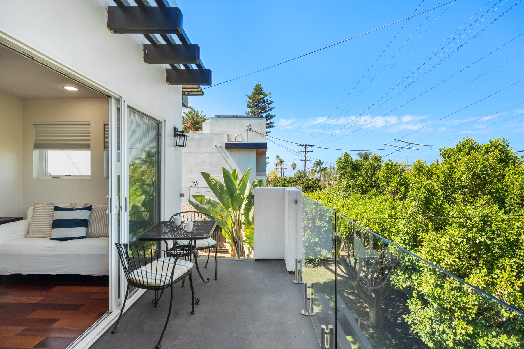 A spiral staircase takes you to the rooftop deck which has distance ocean views along with lounge chairs and a bar height table for 4. It's the perfect spot to what the sunset or sunrise for early birds!