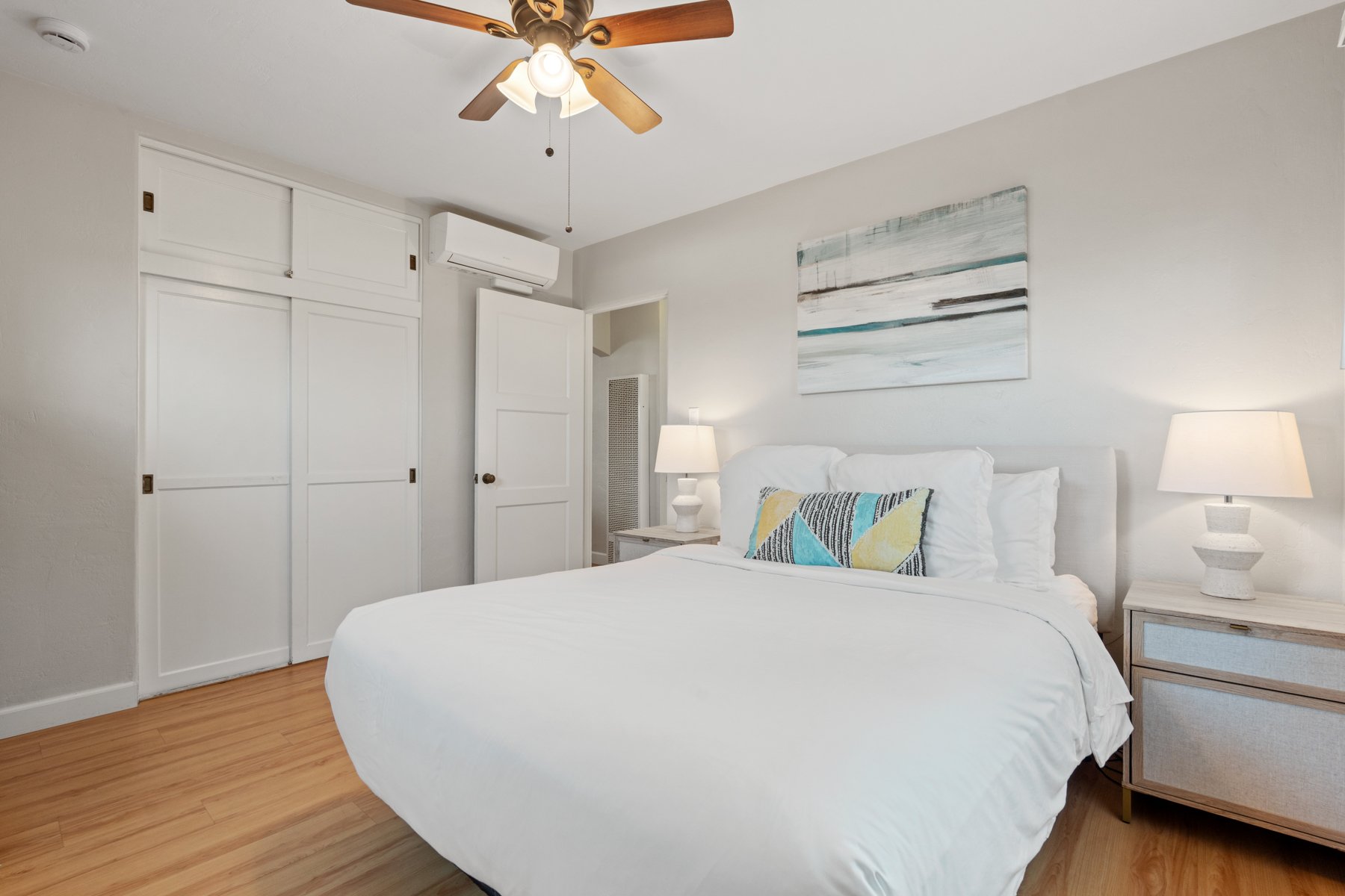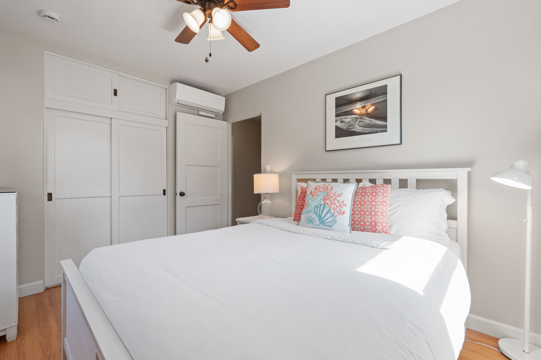 - Second bedroom: queen bed, mini-split, closet, sleeps 2